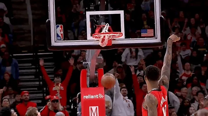 比赛第四节,贾巴里再中三分连得8分,火箭领先到3个回合。